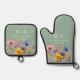 Elegant Boho Wildflower Wedding Oven Mitt & Pot Holder Set