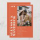 Elegant Bold simple retro beige and orange colour of the year photo wedding invitation with a modern bold font, a photo and an all in one details at the back with qr code.