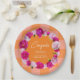 Elegant Bold Floral Orange & Pink Check Graduation Paper Plate