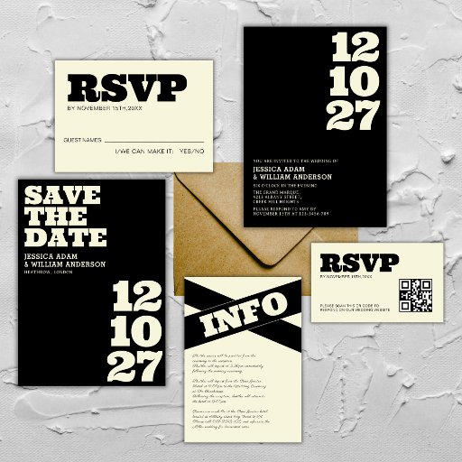 Ultra modern chic and sophisticated bold typography in black and ecru colour personalised wedding response card. This card is easily editable. If you need help with the customisation of this card or you need more matching products for this collection kindly message me via Zazzle.