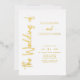 This unique Elegant Bold Script Gold & White Foil Formal Wedding Invitation features beautiful vertical script calligraphy and modern typography, and is fully customisable with your names, wedding details and a QR code for your wedding website. The classic black and white theme is perfect for weddings in any season. Please note that the wedding date and location details will print in gold ink, not gold foil.