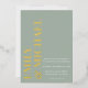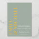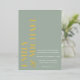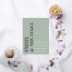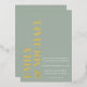 A simple minimal wedding invitation featuring elegant bold typography gold foil names, sage green colour and contemporary design.