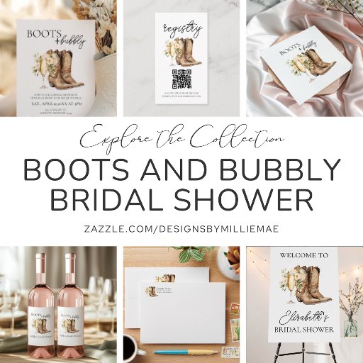 Add a touch of rustic charm to your celebration with this Boots & Bubbly bridal shower wall backdrop. Designed to complement your invitation, it features elegant cowboy boots and a champagne glass overflowing with cream florals—perfect for creating a warm, country-chic atmosphere. A beautiful backdrop for photos, gifts, or the bubbly bar!