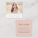 Show off a favourite shot on these modern square business cards for photographers or photography professionals. Design features two lines of custom text beneath your photo in off-black and millennial pink lettering. Add your full contact information on the reverse side on a matching blush pink background.