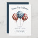 Elegant red white and blue balloons invitation for your patriotic-themed barbeque or celebration.