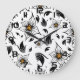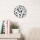 Elegant Botanical Black and White Floral Pattern Large Clock
