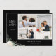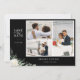 Elegant watercolor botanical foliage and white floral arrangement, save the date 3-photo card. Features, black colour backgrounds, white typography and calligraphy "the" accent graphic.