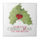Elegant Botanical Country Holiday Christmas Name Ceramic Tile