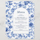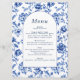 Elegant botanical delftware blue and cream menu