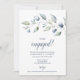 An elegant chic editable dusty blue, green spring summer greenery eucalyptus wreath illustration with an elegant script font.