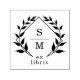 Elegant Botanical Ex Libris Monogram Library Book self-inking stamp featuring a diamond frame with your initials, surrounded by a laurel wreath. There is an ´´ex libris´´ text in classic typography. Customise through the ´´Personalise´´ button.