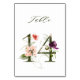 This table number card features a green number decorated with watercolor illustrations of flowers and leaves in peach, blush pink, red, purple and green. This table number is perfect for weddings, graduations, baby showers, bridal showers, anniversaries, and other events.