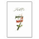 This table number card features a green number decorated with watercolor illustrations of flowers and leaves in blush pink, red, terracotta, and green. This table number is perfect for weddings, graduations, baby showers, bridal showers, anniversaries, and other events.