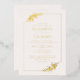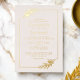 This simple, elegant design features real gold foil text on a pale blush pink background, framed by a gold foil rectangle decorated with olive branch silhouettes in two corners. The back of the card is solid blush.
