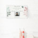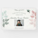 This is an elegant graduation banner featuring a botanical theme with soft pastel-coloured leaves in green, pink, and red. The design includes stylish script and serif fonts, giving it a classy and modern touch. A small graduation cap illustration adds a celebratory element. The layout is clean and well-organised, making it perfect for honouring a graduate. Customise for a personal touch!
