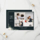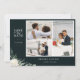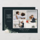 Elegant watercolor botanical foliage and white floral arrangement, save the date 3-photo card. Features, dark hunter green colour backgrounds, white typography and calligraphy "the" accent graphic.