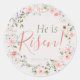 Elegant Botanical 'He is Risen' Christian Easter Classic Round Sticker