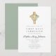 Elegant Botanical Leaves Cross First Communion Invitation