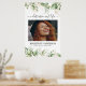 Memorial Print featuring a large photo of the person your remembering, elegant watercolor green botanical eucalyptus leaves, gold floral accents, their name, and birth/death dates.