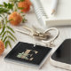 Elegant black keychain with a gold botanical monogram featuring capital E letter in the centre.