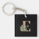 Elegant Botanical Monogram Gold Letter E Key Ring