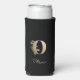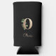 Elegant black can cooler with a gold botanical monogram in the centre.