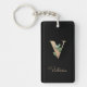 Elegant Botanical Monogram Gold Letter V Key Ring