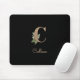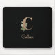 Elegant black mouse pad features a gold botanical monogram in the centre.
