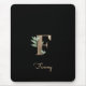 Elegant black mouse pad features a gold botanical monogram in the centre.
