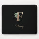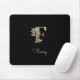 Elegant black mouse pad features a gold botanical monogram in the centre.