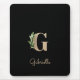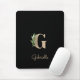 Elegant black mouse pad features a gold botanical monogram in the centre.