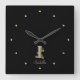 Elegant black wall clock with a gold botanical monogram and custom name.