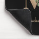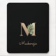 Elegant black mouse pad features a gold botanical monogram in the centre.
