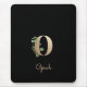 Elegant black mouse pad features a gold botanical monogram in the centre.