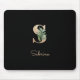 Elegant black mouse pad features a gold botanical monogram in the centre.