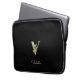 Elegant black laptop sleeve features a gold botanical monogram in the centre.
