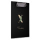 Elegant black clipboard features a gold botanical monogram in the centre.