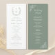 These wedding ceremony programs feature an elegant botanical design with monogram and modern script typography in a sage green colour. Personalise with your text. Matching stationery also available.