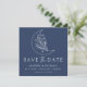 Elegant Botanical Moon and Stars Navy Wedding Save The Date