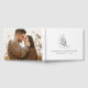 Designed to coordinate with our Elegant Botanical Moon and Stars wedding collection, this boho wedding guest book features a black line art illustration of a moon adorned with stars and foliage with a white background. Personalise the front of the moon wedding guest book with your names and date. Your horizontal engagement photo is displayed on the back of the guest book