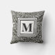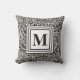 Elegant Botanical Pattern Black and White Monogram Cushion