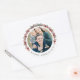 Elegant Botanical Wreath Photo Christmas Classic Round Sticker.