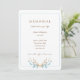 Elegant memorial service invitation with a bouquet of leaves in pale blue and brown and a light curved blue border. Honour someone with a celebration of life service. Customise all text for your event and delete any unneeded text lines.