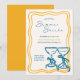 et the tone for a chic summer gathering with this elegant Summer Soirée invitation. Featuring playful yellow retro border lines, delicate handwritten script, and clinking cocktail glasses tied with ribbon, this invite is perfect for a classy backyard party, rooftop cocktail hour, or casual housewarming. Customisable with your event details, it's ideal for summer parties, engagement celebrations, or birthday soirées.