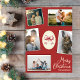 The design features a customisable layout for your family photos, highlighted by a central festive bow illustration. The rich red with vintage cream adds a timeless touch making it perfect for sending warm holiday wishes to family and friends. Personalise with your family name and greeting for a memorable holiday season.