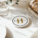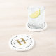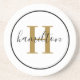 Elegant Brass Black Round Monogram Script Coaster