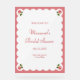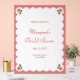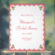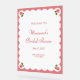 Welcome your guests with this sweet and sophisticated pink rose bridal shower welcome sign. Featuring charming rosebud illustrations in each corner, a scalloped white border, and a rose pink background, this design adds a romantic flair to your celebration. The elegant serif and script fonts lend a classic touch, making it perfect for garden parties, tea-themed showers, or any event celebrating love and beauty. Personalise with the bride’s name, date, and location for a lovely, custom detail.