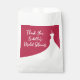 An elegant wedding dress accents this bridal shower gift bag on a viva magenta background. This is part of the Elegant Bridal Shower Collection in magenta. If additional coordinating items are needed just contact us at prettyfancyinvits@gmail.com with your request.