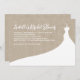 An elegant wedding dress accents this bridal shower invitation on a rustic burlap background. This invitation is shown on the matte paper; however, my favourite is the linen paper. This invitation is part of the Elegant Bridal Shower Collection in burlap. If additional coordinating items are needed, just contact us at prettyfancyinvites@gmail.com with your request.