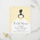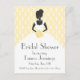 Bridal shower invitation with silhouette of an elegant bride against damask background in yellow and white.